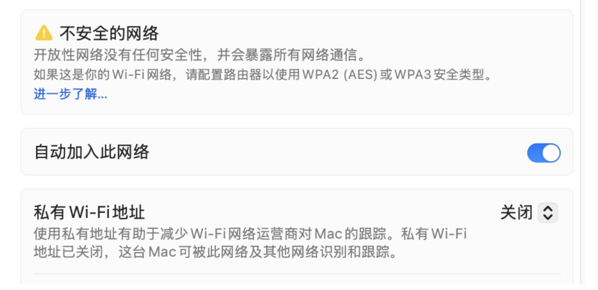讲WIFI设置里面的私有wifi地址关闭或者改成固定
